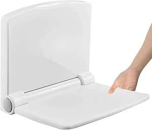 Ongebruikt, volledig, ok, Heuffe Opvouwbaar Douchezitje met Rugleuning Wandgemonteerd - 200kg Draagvermogen, Antislip Badkamerstoel voor Senioren en Minder Valide Volwassenen, Wit, B09QGVP8D8