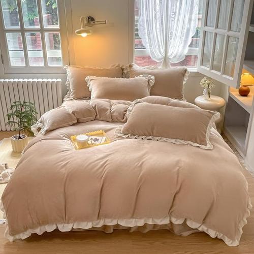 Ongeopend, in seal, ok, TOPCHANCES Pluche beddengoed, 135 x 200 cm, meisjes, fluweelzacht pluche, flanel, dekbedovertrek met ritssluiting, met kussenslopen 80 x 80 cm, camel, B0DBYYN6MF