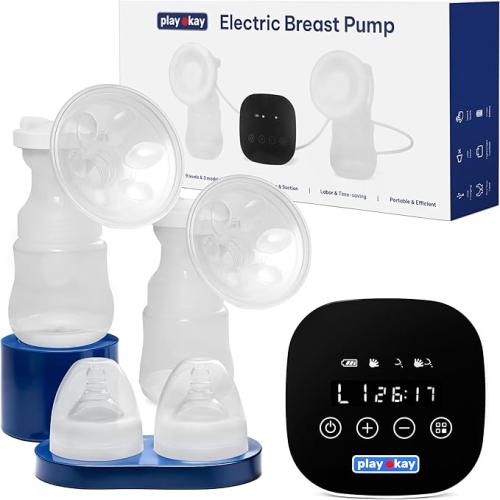 Ongeopend, ok, Play Okay Elektrische borstkolf - Draagbare, geluidsarme borstkolf - Zeer stille melkafkolf - Dubbele borstkolf voor baby's, handsfree - Pijnloos - Voedingsaccessoires (wit), B0CRL1FRZ1