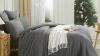 Ongeopend, ok, Seersucker Beddengoed (135 x 200 cm), 4-delig, grijs, donkergrijs, gestreept, zomer, effen, omkeerbaar, microvezel, ademend, licht, dekbedovertrekken 135, 200 cm en kussenslopen 80 x 80 cm, B0D7CZQMY3