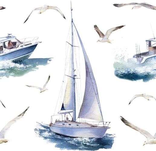 Ongeopend, in seal, 6 x ReWallpaper behang zelfklevend wit blauw 44.5CM×7M zelfklevende film kinderkamer kast nautisch behang wit patroon zeilboot decoratieve film zelfklevend meubilair voor badkamer waterdicht, B0DPHDJ81F