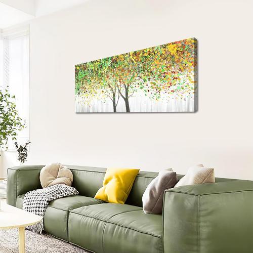 Ongeopend, Canvas print, groen geel bloesem-levensboom, schilderij op canvas, poster foto, wanddecoratie 50x120cm, B0CC1S4T47
