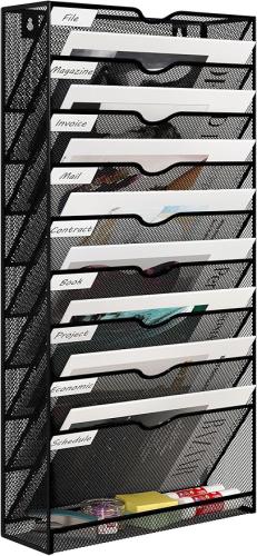 Ongebruikt, klein deukje onderaan rechts, EasyPAG 10-laags A4-magazijnhouder voor aan de muur, ophangrek voor documenten, postorganizer en tijdschriftenrek, zwart, B0CC2HK4WB