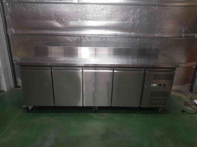 Roestvrijstalen koelkast met onderbouw, in perfecte staat. Alle deurrubbers zijn aanwezig. Er ontbreekt een steunlatje voor een rooster (zie foto), hoewel dit voor grote flessen wel handiger is.