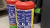 3 snelblustoestellen en 5 PVC- afvalemmers met deksel