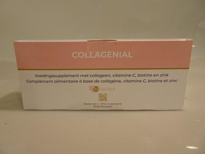 30 x 6,5 g per verpakking, vervaldatum 11/2026, Collagenial is een supplement ontworpen om de huid, haren en nagels te ondersteunen door middel van nutriënten zoals gehydrolyseerd collageen, vitamine C, zink en biotine.