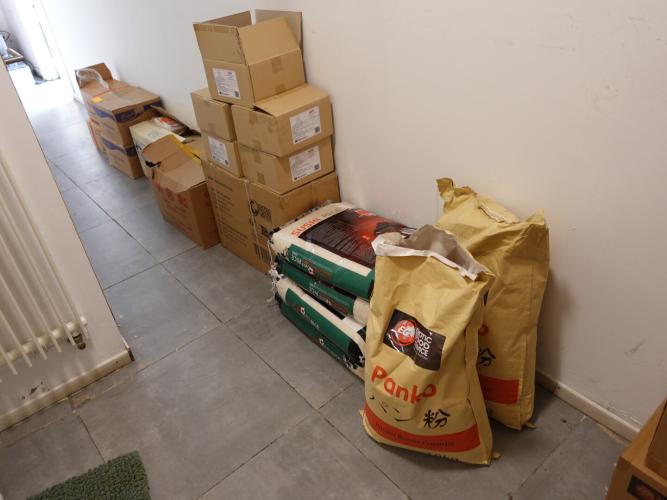 oa: panko paneermeel, zakken rijst 20kg , zeewier , noodles, wasabi ,....