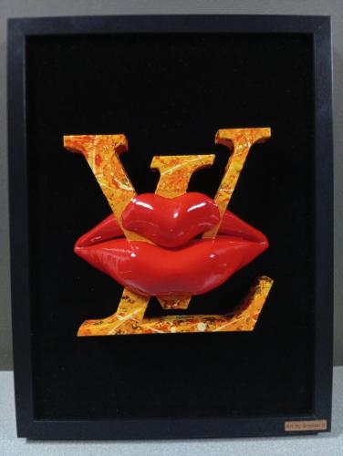 Kissed by Louis Vuitton (Luxury edition) Waardering expert : € 1.500 - 1.800 - Editie : 10 / 10 - Afmetingen 40 x 30 cm. Het werk geeft een kleurrijk Louis Vuitton logo weer in 3D besprenkeld met verfsprenkels en strepen in meer dan 25 verschillende kleuren. Kleuren die het logo leven, fashion en stijl geven. In het logo zijn vrouwenlippen verwerkt die in bloedrood zijn bewerkt met goudkleurige blush. Het logo is ongeveer 8 cm dik en steekt boven de achtergrond uit. Het werk hangt op een achtergrond van chique stijlvolle zwarte velours stof. Het geheel is ingekaderd in een mooi houten kader in zwarte kleur Komt met certificaat van authenticity. Bio van de kunstenaar: Het werk van Brother X is de voorbije jaren ettelijke keren in de spotlights gekomen met verkopen en vermeldingen in het buitenland aanwezigheid in galerijen in België, Frankrijk en Italië en op Belgische TV. De kunstenaar brengt 2 stijlen die hij vaak combineert in één werk : enerzijds popart en anderzijds brandart. Awards & Nominaties: -Beste 3D artist in de categorie Mixed Materials. ( België 2020 ) -Genomineerd Worldwide artist award FIABCN 2022 (Barcelona 2022) -Genomineerd voor de Art for Peace award 2022 ( Barcelona 2022 ) De stijl is uniek (combinatie van zelf ontworpen 3D model op een canvas board) en is vaak een mix van sculptuur en schilderij. Instagram : brotherxofficial