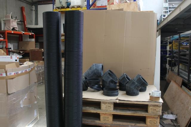 Plm 15 stuks, Partij Isocomplus, 5 x ISO+B 45 160-125 Z / Iso bocht Ø125 45° incl 1 mof + 2 x ISO+B 45 200-174 Z / Iso bocht Ø174 45° incl 1 mof + 1 x bocht 90° Ø170 [ISO+B90 200-170] + 2 x geïsoleerde buis Ø170 - 2m [ISO+K200-170] + 2 x verloop Ø200-Ø150 [ISO+M200-150] + 2 x verloop Ø200-Ø180 [ISO+M200-180] +1 x koppelstuk Ø200 [ISO+M200-200]