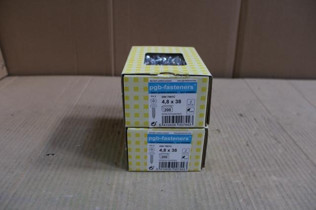 Ongebruikt, 2 x PGBfast Plaatschroef DIN 7981C-H Ø4,80x38 Zn/200
