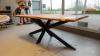 oude teak, vv: metalen spiderpoot, 2200x960x800