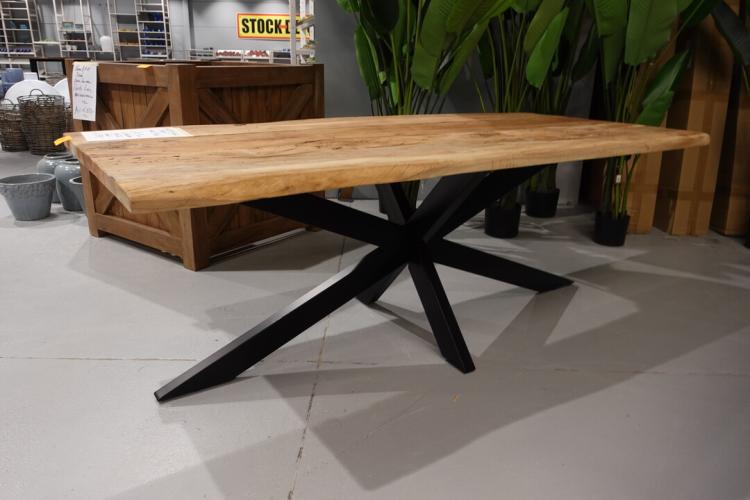 oude teak, vv: metalen spiderpoot, 2200x950x800