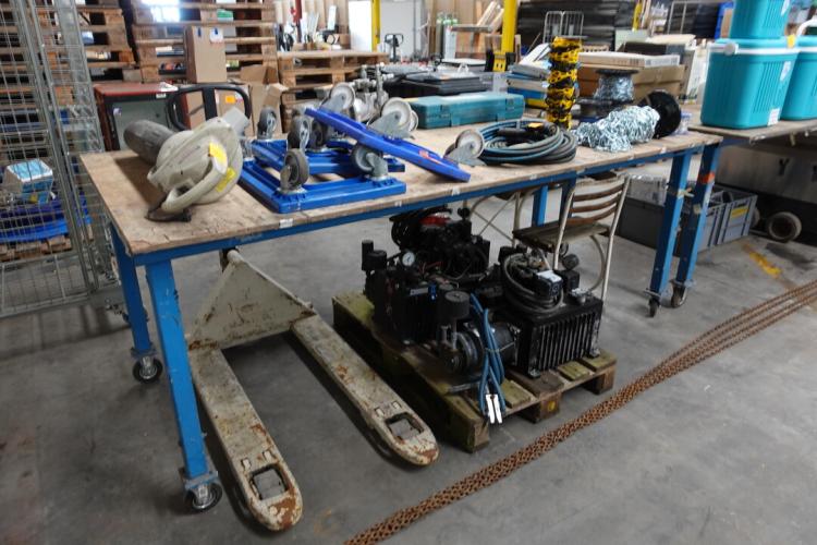 Verrolbare werktafel (+-1m20x2m50, 1m hoog)