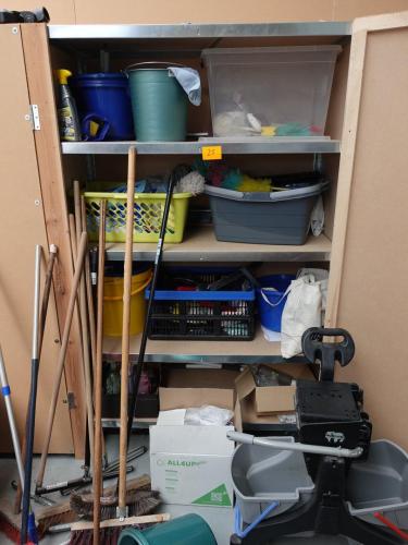 alles moet mee, oa vuilbakken, borstels, emmers, kuisproducten, …