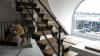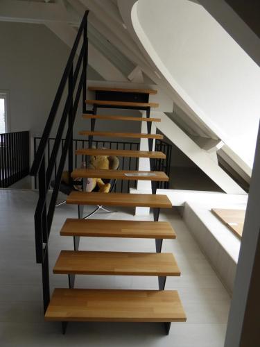 metalen trap met houten treden