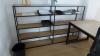 2 stoelen, motalen tafel met houten blad 2600x900x760, computerscherm, metalen rek 1900x1150, bureaustoel