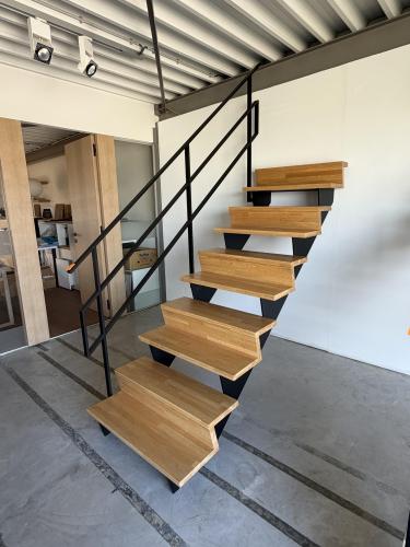 metalen trap met houten treden 900x1800, 10 treden
