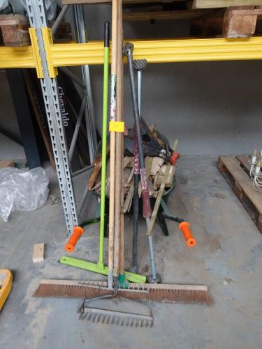 oa: bakwagen met inhoud , borstels, hark, schragen