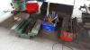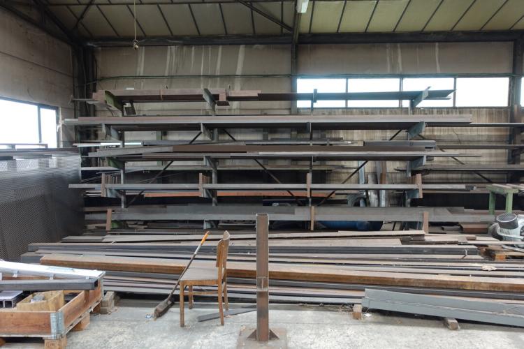 Grote partij ijzer, kabels , 3x rek met inhoud en producten, diverse schragen, lastafel, 3x kar, bureau met inhoud...( Alles moet mee ! )