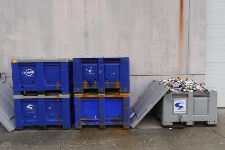 inhoud: gebruikte foam spuitbussen/silicone, (inhoud moet mee)