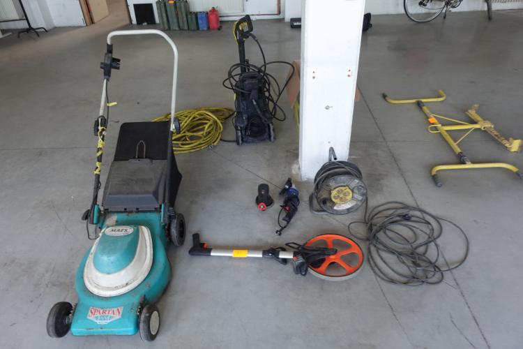 Kabel op rol, meetwiel, haakse slijper, schuurmachine, grasmachine