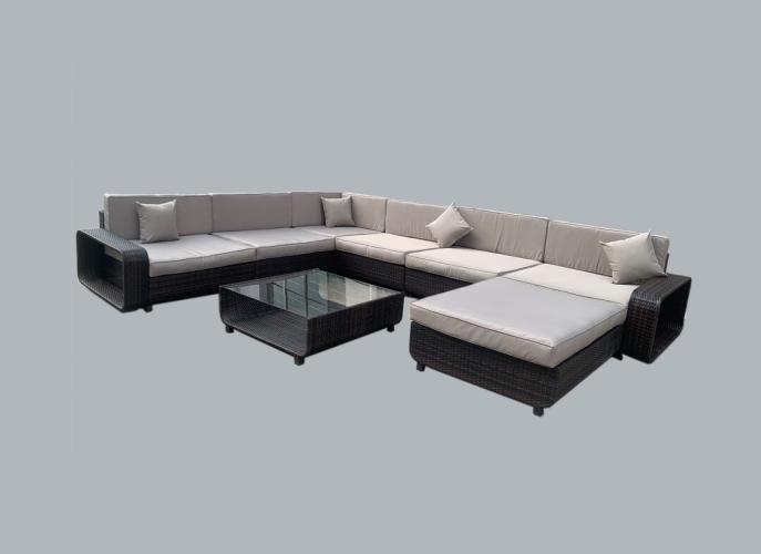 Loungeset GARDA | 8-delig | Wicker | Donkerbruin + grijs