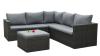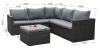 Loungeset 4-delig - hoek - Antraciet wicker + grijze kussens - Weerbestendig vlechtwerk
