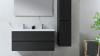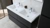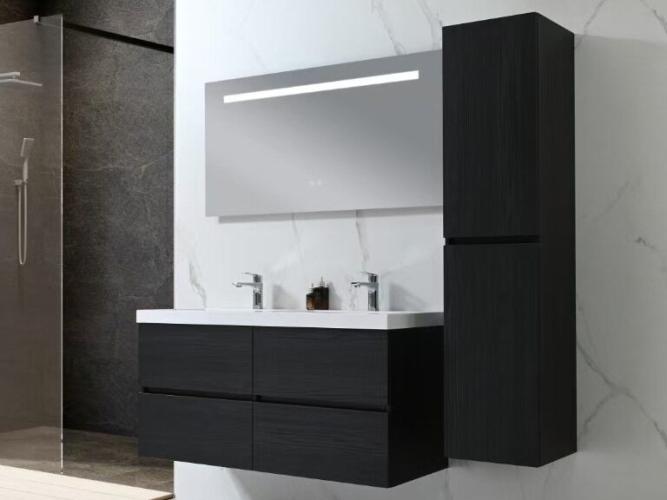 Badkamermeubel 120 cm - Donker hout decor + witte dubbele wasbak - Incl. kranen