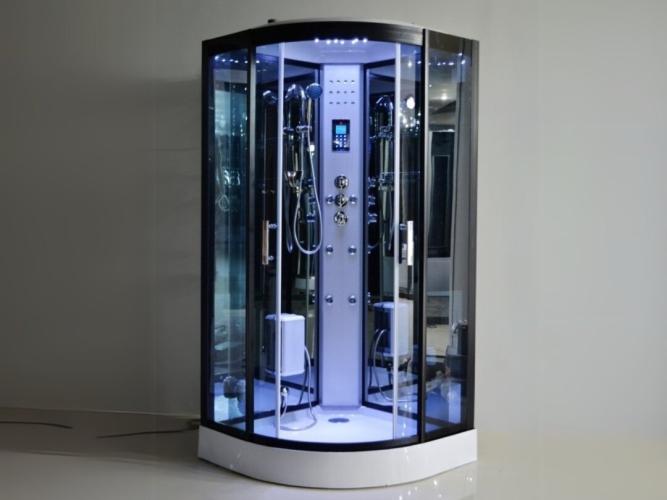 Stoomcabine halfrond - wit bad met zwarte cabine - 100x100x215 cm