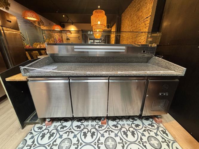 vv graniet werkblad en 3 RVS deuren + koeling