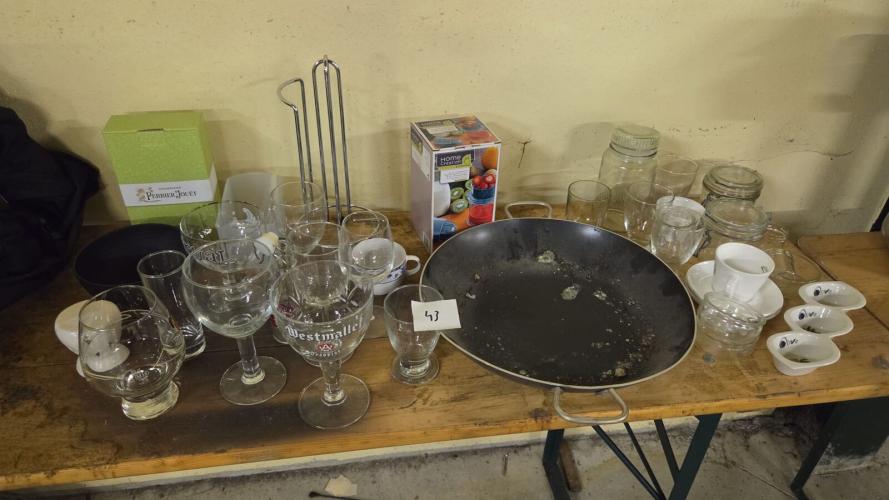 o.a. pan, glazen van orval, westmalle, fruitpers,…