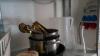 Opbergrek met inhoud : plastieken bakken - gastronormbakken - maatbekers - schuimspanen - ovenschotels- schalen enz...