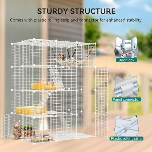 24x Ongeopend, YITAHOME Grote dierenkooi voor binnen, 4 niveaus, metaaldraad met 3 ladders, Catio met hangmat, dierenkooi voor 1 tot 3 katten, konijn, wit, 107 x 72 x 142 cm B0CQJMYWF4
