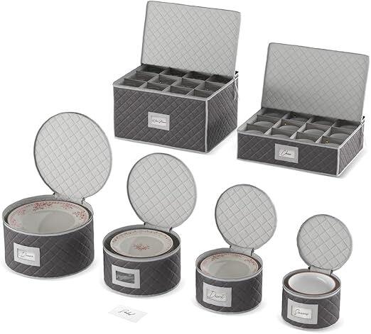 Ongeopend, beschadigde verpakkingen,in seal, 75 x Woffit Servies Opbergset - Gewatteerde Containers voor Fijn China & Glazen - 12 Personen, 6-delige Servies Opbergkit bevat 48 Vilten Beschermers voor Borden w/Insert Kaarten,B07DGG4QPQ, totaal retail 3100€