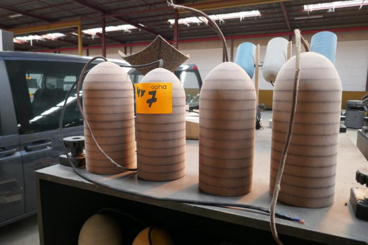 4 hanglampen lichtbruine kleur met lijntjes EROSONO