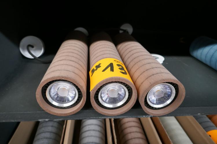 3 hanglampen bruine kleur met lijntjes INITIAL