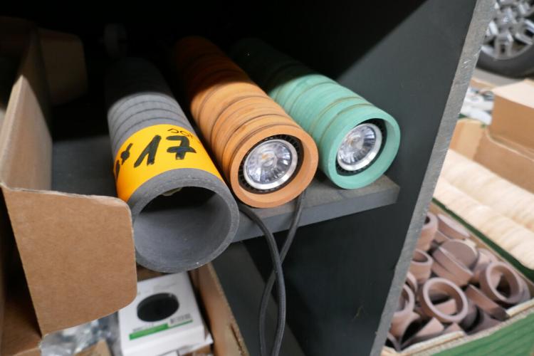 3 hanglampen diverse kleuren met lijntjes INITIAL