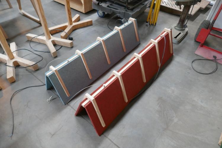 2 houten tafelhanglampen met kap in kurk