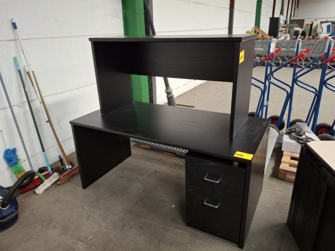 2 zwarte bureautafels waaronder één met ladenblok