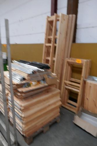 Gedemonteerde houten opbergrekken ( zie fotos voor aantal legborden en staanders )
