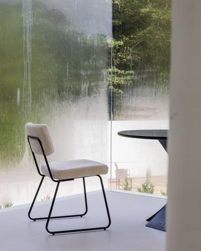 2x Eetkamerstoel metalen onderstel - witte ribbelstof