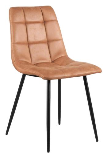 Ongeopende verpakking, 4 stuks eetkamerstoel in cognac microfiber met zwart stalen onderstel