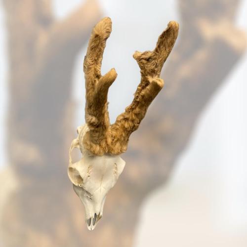 Ree - Schedel met gewei met bast