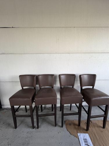 4 hoge bruine stoelen, wat schade aan het leder
